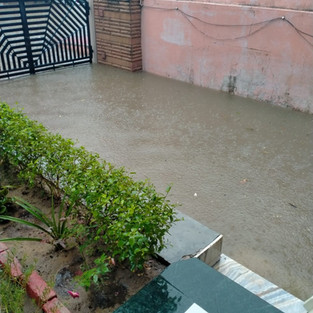 Im Juli und August kommt der eigentlich heiß ersehnte Regen, vorher ist alles vertrocknet und die Temperaturen steigen auf über 45 Grad. Manchmal kommt er dann aber zu heftig und alles steht unter Wasser. Am 14. August schwammen dann auch unsere Schränke im Hof und der Keller lief voll. Die Kids konnten noch die Inhalte vorher ins Trockene bringen, aber alles ging so schnell, dass selbst die Wäsche auf der Leine hängen blieb.